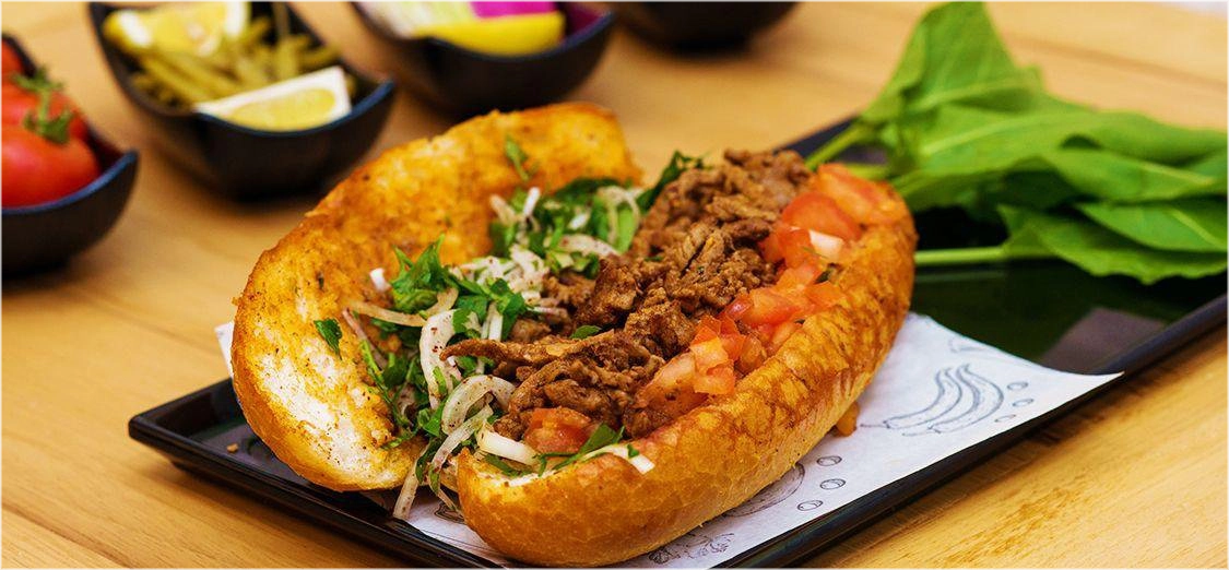 Fijngesneden kalfsvlees, gewokt met specerijen en geserveerd_in_een_broodje0